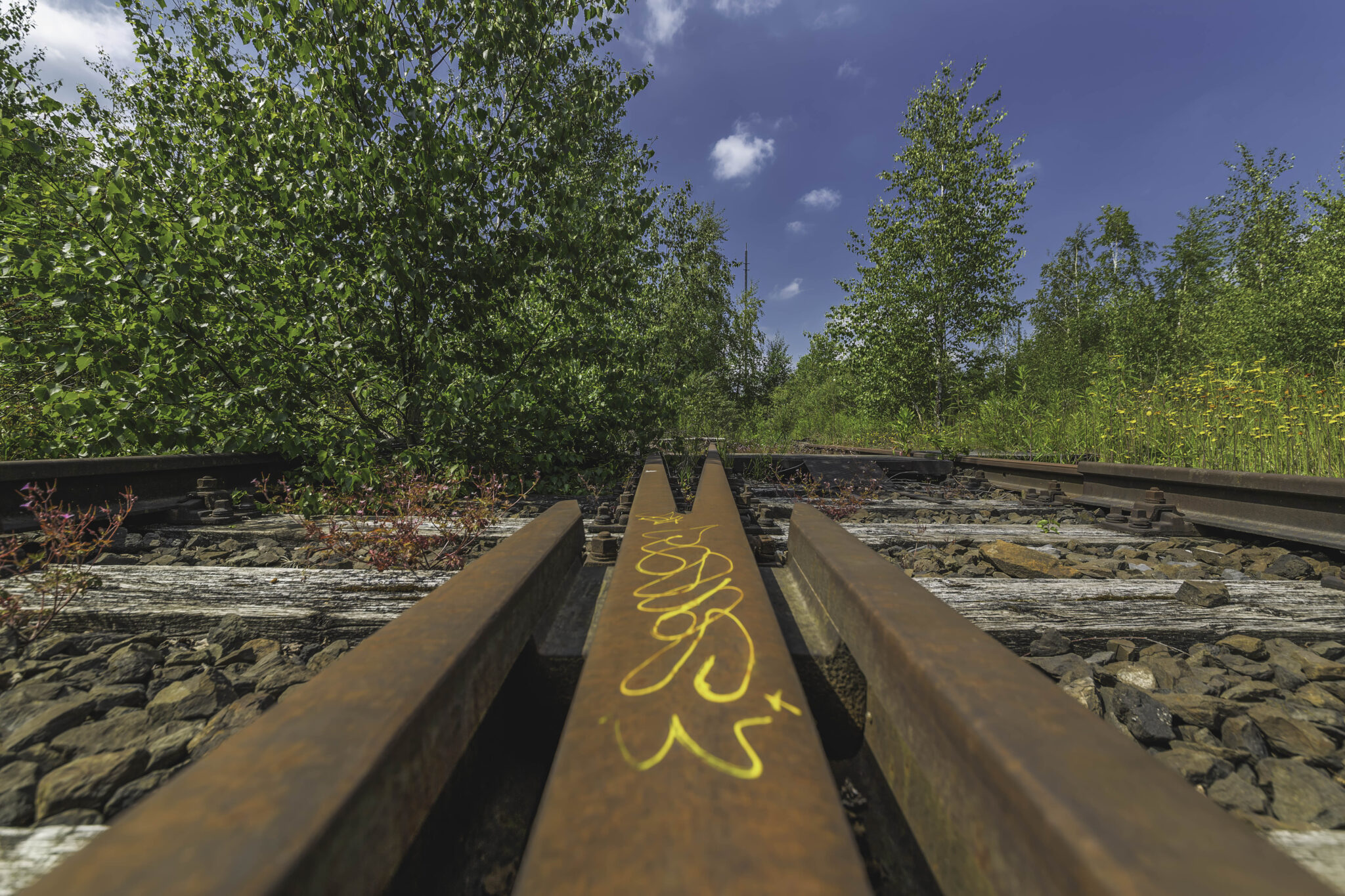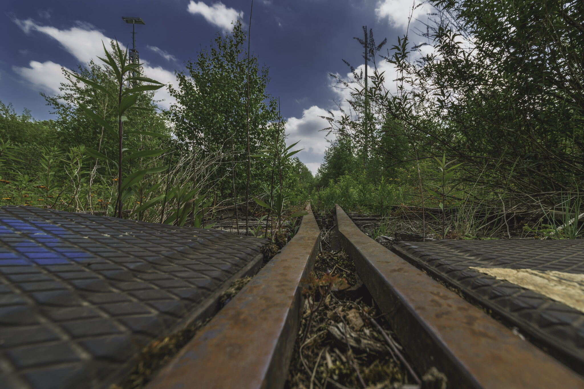 Bereits beim Betreten der Ruine wurde klar: Hier hat die Natur sich ihren Platz zurückgeholt, wie es oft bei verlassenen Industrieanlagen zu beobachten ist. Der fortschreitende Verfall zeigt eindrucksvoll, wie schnell einst belebte Orte der Vergangenheit angehören können. Die alten Bahngleise sind mit dichten Gräsern und kleinen Bäumen überwuchert, Wurzeln sprengen die Pflastersteine auf dem einst geschäftigen Betriebshof.