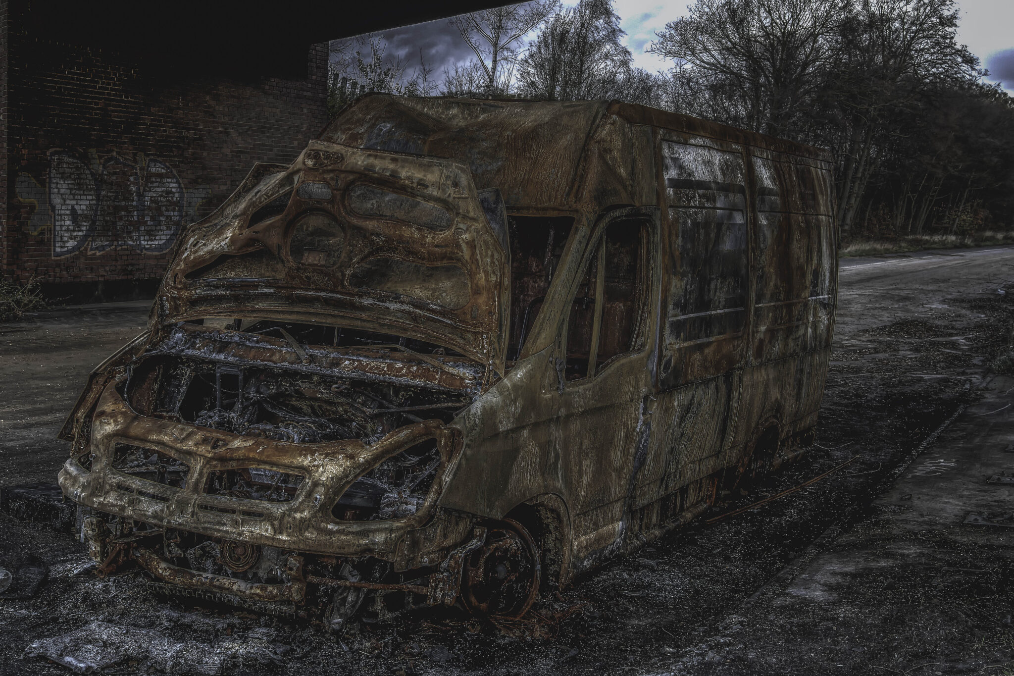 - Verlassene Fahrzeuge: Der ausgebrannte Lieferwagen steht allein auf der Trasse und zeugt von der Aufgabe und dem Verfall. Dieses Fahrzeug wurde offenbar von Aktivisten in Brand gesetzt, um auf die Konflikte um den Tagebau Hambach aufmerksam zu machen. Sein verrostetes Gerippe ist ein Sinnbild für die Spuren menschlicher Eingriffe und die Vergänglichkeit von Infrastruktur.