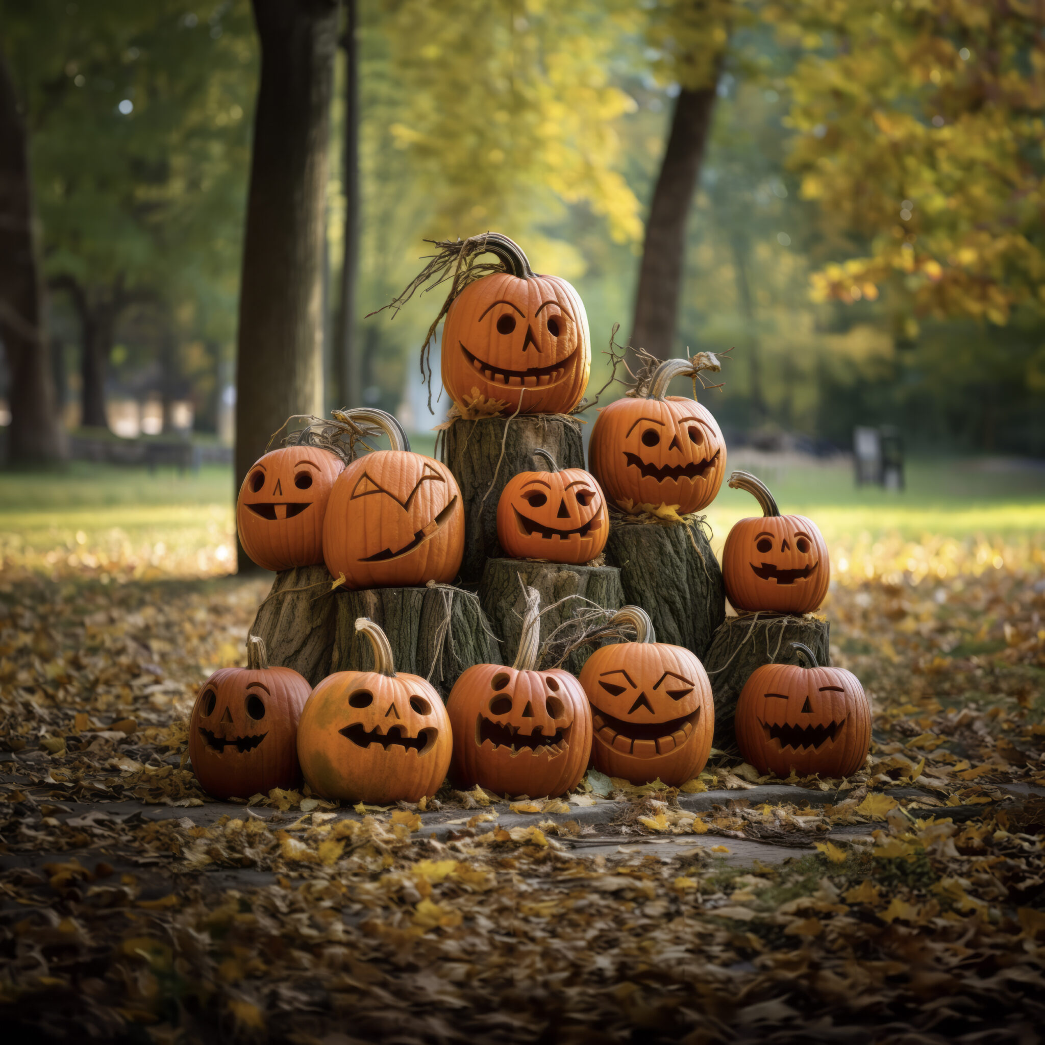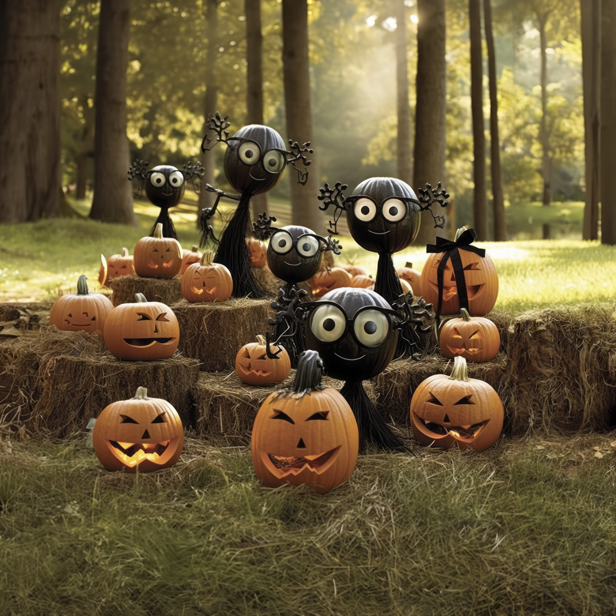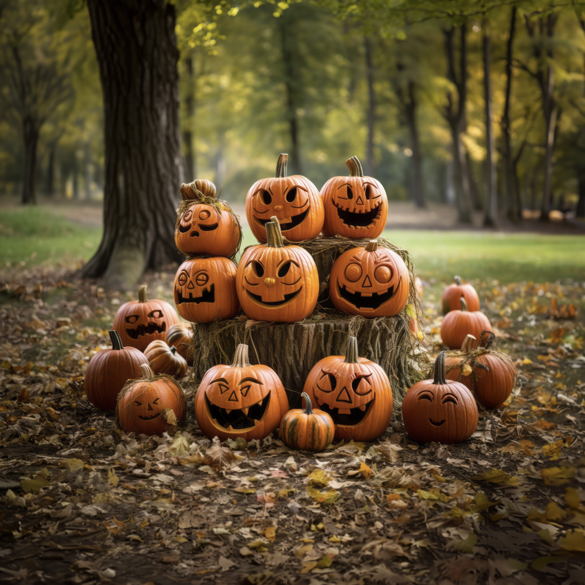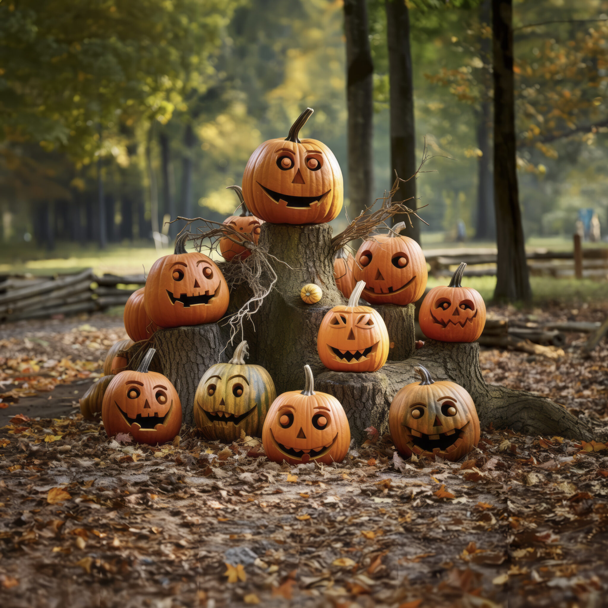 Ein alter, verlassener Pfad führte zu einer Lichtung, wo eine einzigartige Versammlung von Kürbissen stattfand. Aber dies waren nicht einfach nur Kürbisse. Sie waren geformt und geschnitzt, um Gesichter zu zeigen, die voller Leben und Persönlichkeit waren. Von frechen Grinsen bis zu gruseligen Grimassen, die Stimmungen dieser Kürbisse waren so vielfältig wie die Blätter an den Bäumen.