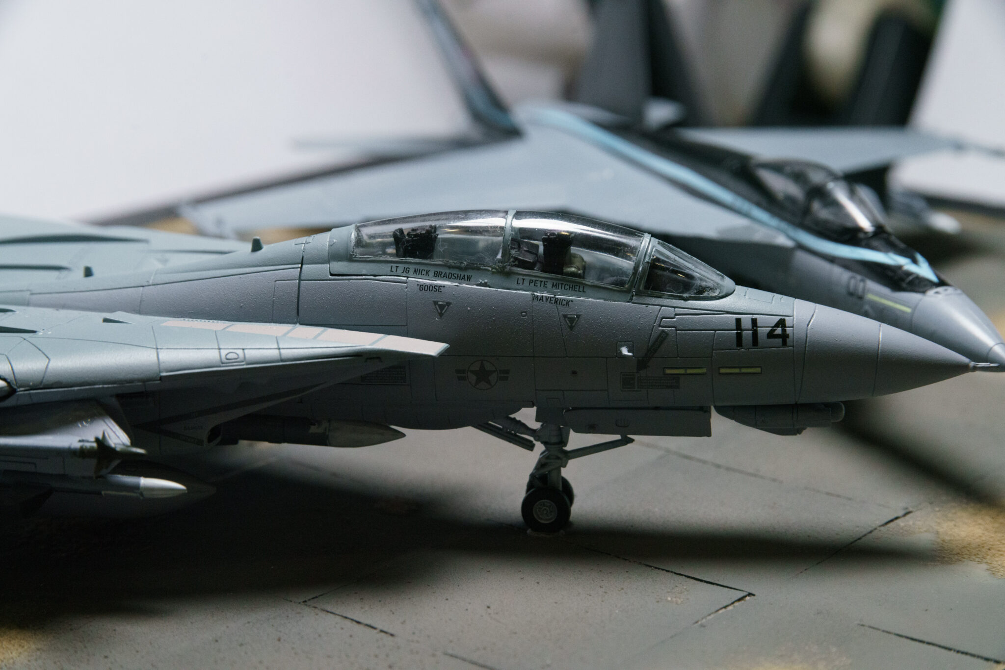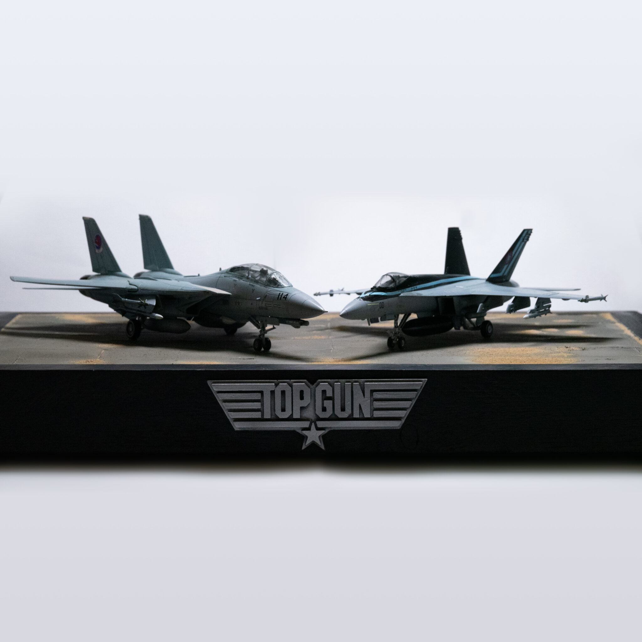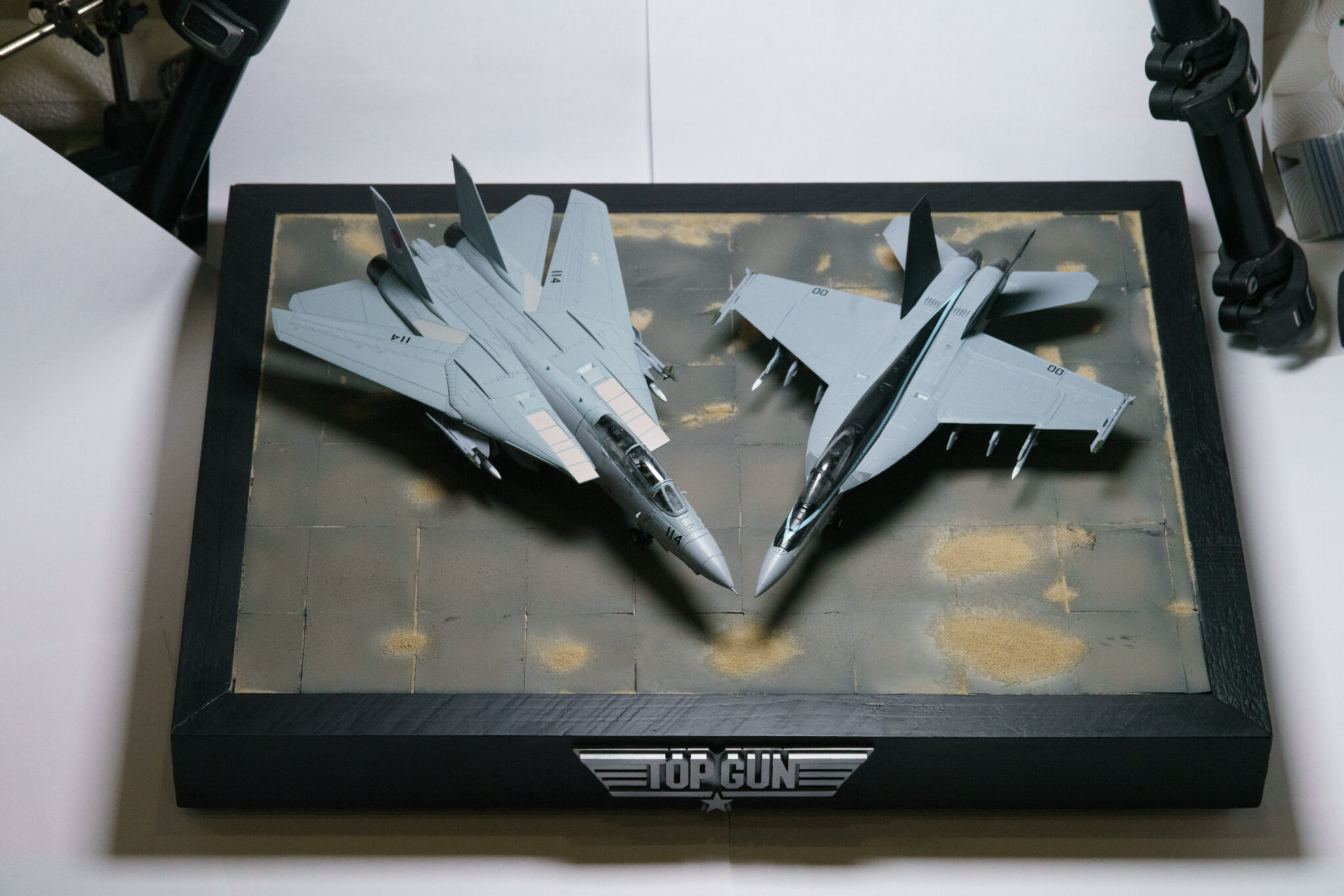 Zwei Jets, die Generationen geprägt haben – und endlich auf meiner Werkbank: die F-14A Tomcat und die F/A-18E Super Hornet, stilecht wie in „Top Gun“ und „Top Gun: Maverick“. Dass ich dieses Diorama bauen wollte, war eigentlich keine Frage. Das war eine Herzensangelegenheit. Ich wollte das Gefühl der Filme einfangen: die Spannung, den Stolz, und ganz ehrlich auch den Kindheitstraum, einmal selbst im Cockpit zu sitzen. Gerade weil beide Jets Ikonen der Filmgeschichte sind, war es ein ambitioniertes Vorhaben – mit vielen kleinen Fallen und überraschenden Glücksmomenten.